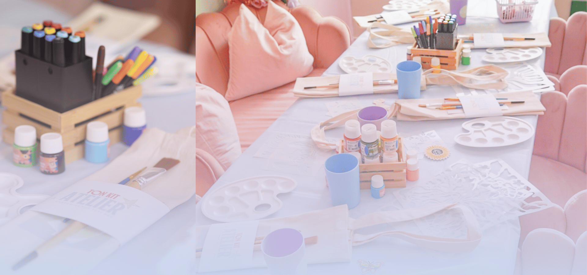 Nos ateliers créatifs à domicile transforment votre espace en mini atelier de création !Chacun repart avec son sac personnalisé, un souvenir unique et durable