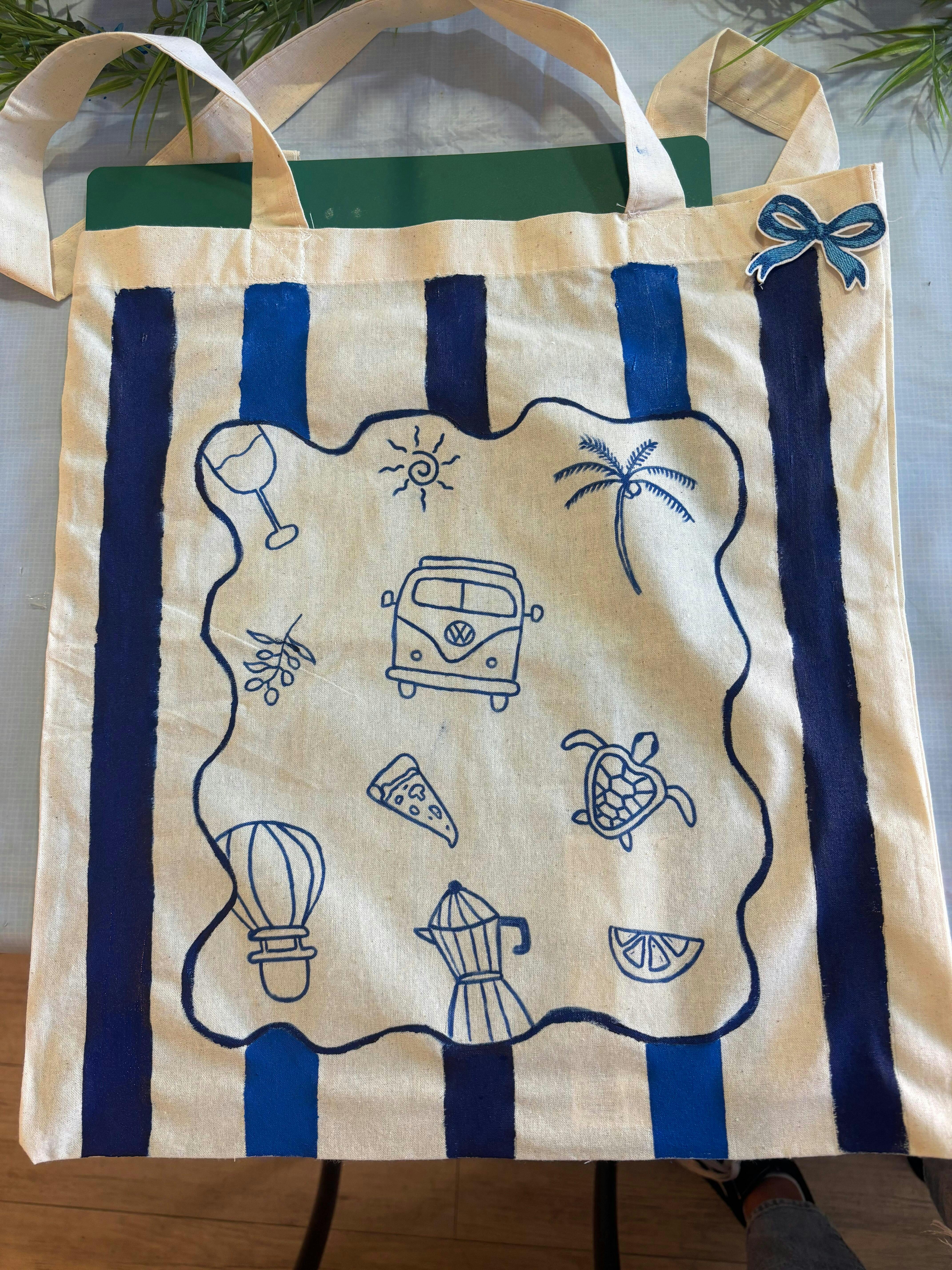 Fini les loisirs créatifs adultes ennuyeux ! Pendant 1h30, plongez dans l'univers de la création et repartez avec un tote bag unique, reflétant parfaitement votre style.