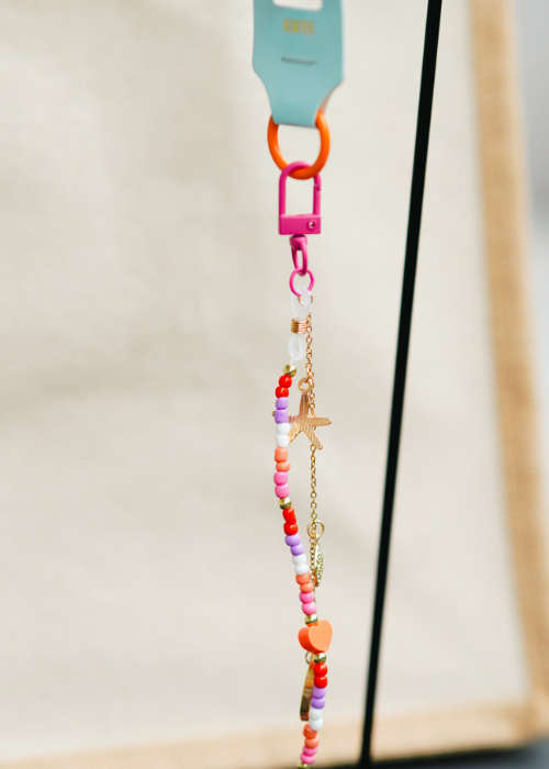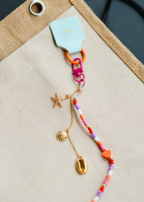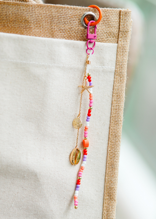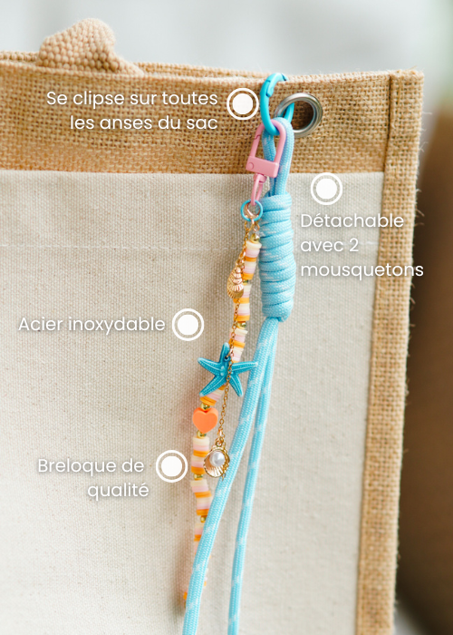 Fini les bijoux de sac qui ne vont qu'avec un seul modèle ! Notre bijou "Barrière de Corail" se clipse sur toutes les anses de sac, qu'elles soient fines ou larges. Une polyvalence pensée pour tous tes sacs préférés.