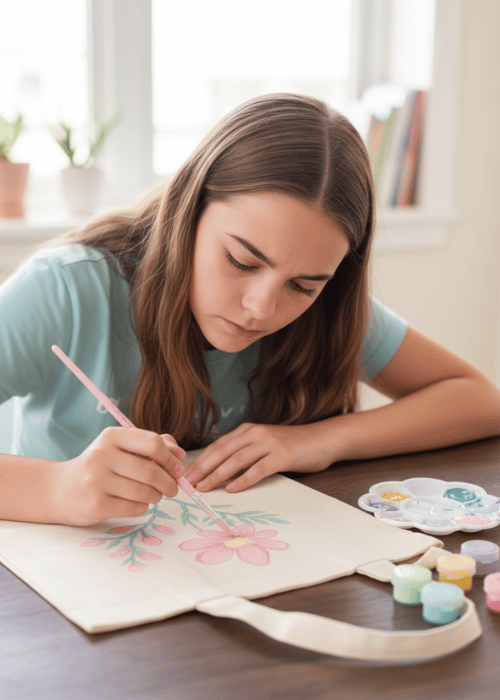 Ce kit offre une activité complète qui encourage l'enfant (dès 7 ans) à exprimer sa créativité. L'utilisation des pochoirs et de la peinture pastel stimule le sens de la couleur et de la composition. Le fait de créer un objet utilitaire qu'il peut porter fièrement ou offrir renforce son estime de soi et sa confiance en ses capacités manuelles.
