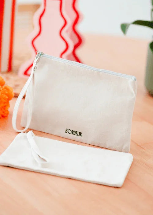 La pochette BordeliK personnalisable, c'est le petit accessoire malin, fun et unique qui s'adapte à toi… ou à la personne à qui tu l'offres ! Ajoute un prénom, une phrase décalée, un mot doux ou complètement barré : bref, fais-en TA pochette.