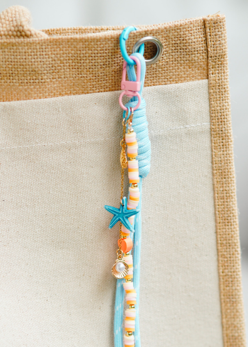 Inspiré par la douceur des vacances et la brise marine, ce bijou de sac est une invitation à l'évasion. Avec ses perles chatoyantes, ses étoiles de mer délicates et ses teintes pastel évoquant l'océan, il apporte une touche de fraîcheur et de fantaisie à n'importe quel tote bag en jute (comme notre "Passion" !), sac de plage, sac à dos ou sac de ville.